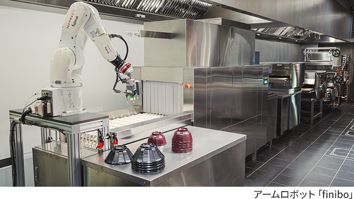 コンビオーブン、バリオ、ベーカリーオーブンをはじめ、コンベア洗浄機と洗いあがった食器を自動仕分けするアームロボット「finibo」、下引き鉄板焼き、再加熱キャビネット、自然冷媒冷蔵庫を常設展示。