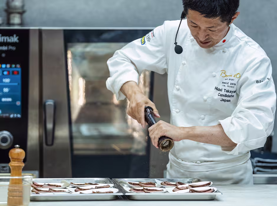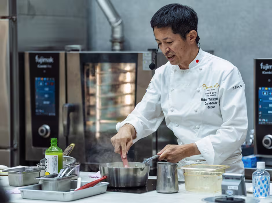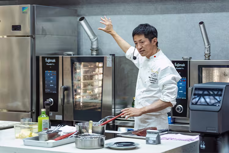品質を維持しながら効率的な調理を実現するには、精密な温度制御が不可欠です。わずか2~5℃の加熱温度の違いが、料理の食感や品質に劇的な変化をもたらすことをご存知でしょうか。本記事は、ボキューズ・ドール国際料理コンクールで入賞実績のある、神戸のフレンチレストラン「アントル ヌー」オーナーシェフ 髙山英紀氏による実際の展示会での調理実演内容をもとに、フジマックが科学的根拠を付加してお届けいたします。プロの料理人による実践的な温度制御技術と、タンパク質の熱変性理論を組み合わせることで、スチームコンベクションオーブンを活用した効率的な調理活用例をご紹介します。