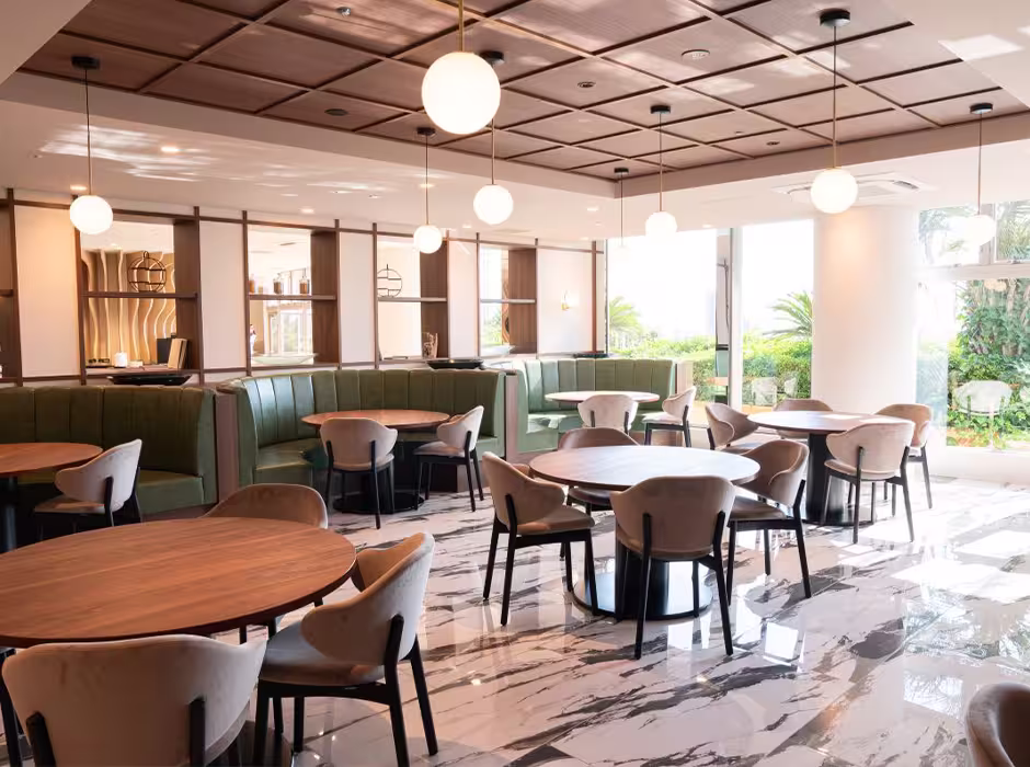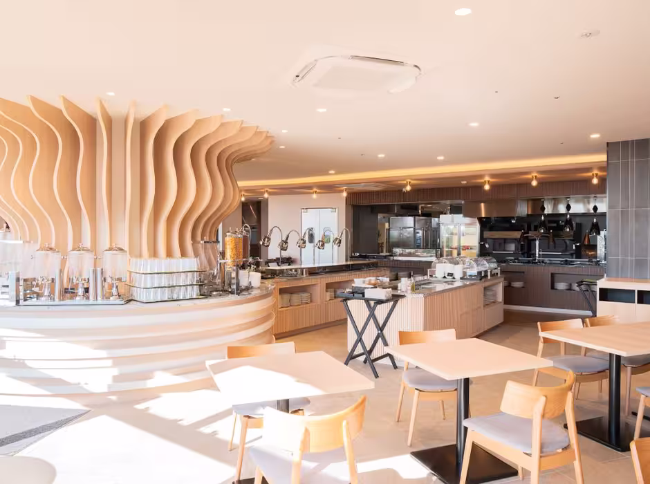 2025年4月25日、料飲部門のリニューアルの一環として、レストラン「レヴァンティーナ」が営業を始めました。88席の客席は、朝食や夕食などのビュッフェ利用を想定したエリアと、プリフィックスコースの利用を想定したエリアの大きく2ゾーンで構成されており、個室も2室用意されています。