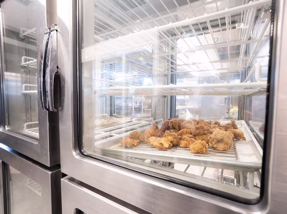 - セントラルキッチンの動線は一方通行。冷蔵庫だけでなく、温蔵庫もパススルー式です